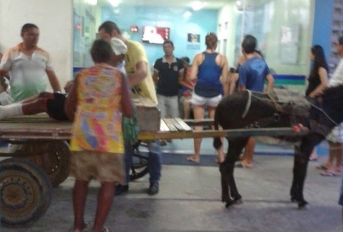 Sem ambulâncias do Samu, um homem foi socorrido para o hospital municipal de Santa Cruz do Capibaribe (PE), na noite da última quinta-feira (09), de carroça de burro.